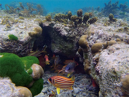 D'ailleurs le lagon aux eaux calmes, peu profondes, est idéal pour la baignade et la plongée surtout à marée haute. Entouré d'une barrière de corail, parfaitement protégé, il vous invitera à de savoureux moments de détente. Les sandales sont vivement recommandées !
